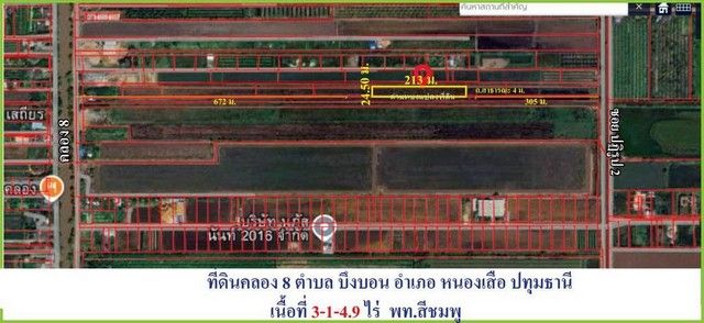 MT155 : ขายถูกที่ดินบนถนนรังสิต- นครนายก คลอง 8 ฝั่งตะวันออก ต บึงบอน หนองเสือ ปทุมธานี