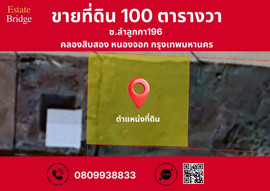ดิน 100 ตารางวา ซ.ลำลูกกา196 แขวงคลองสิบสอง เขตหนองจอก กรุงเทพมหานคร