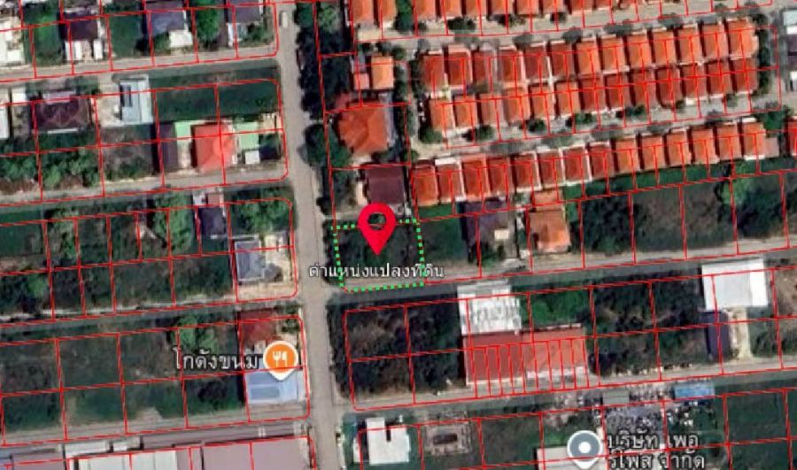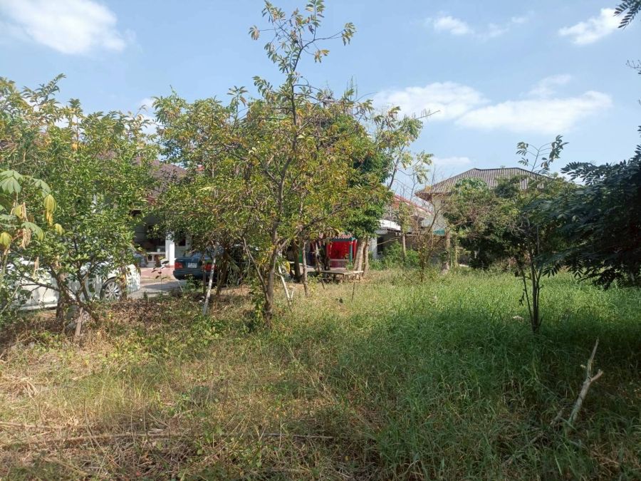 ที่ดินถมแล้ว เนื้อที่ 194 ตารางวา หน้ากว้าง 22 เมตร ลึก 35 เมตร มีรั้วล้อม