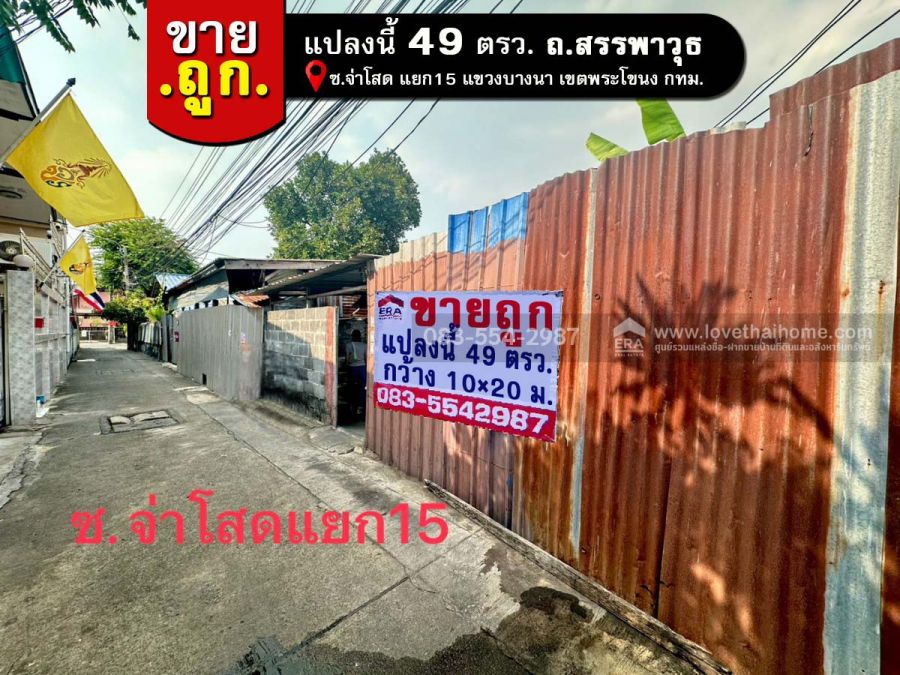 - ที่ดินเปล่า 49 ตรว. ซ.จ่าโสด แยก 15 ถ.สรรพาวุธ