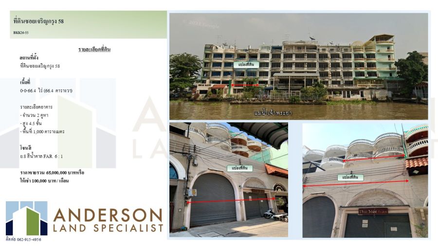 ✅ขายอาคารพาณิชย์พร้อมที่ดิน ซอยเจริญกรุง 58