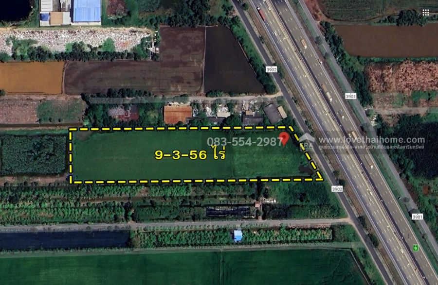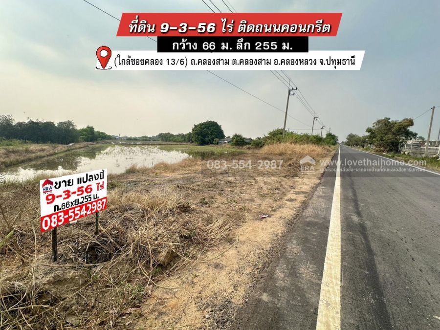 - ที่ดินเปล่า 9-3-56 ไร่ ถ.คลองสาม (เลียบทางด่วน-มอเตอร์เวย์) ติดซอยคลอง 13/6