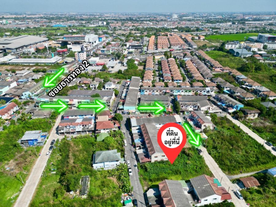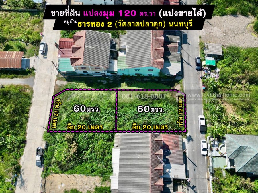 ขายที่ดิน นนทบุรี ถนนวัดลาดปลาดุก หมู่บ้านธารทอง 2 แปลงมุม 120ตารางวา แบ่งขายได้ ราคาตารางวาละ 19900บาท ติดถนน2ด้าน