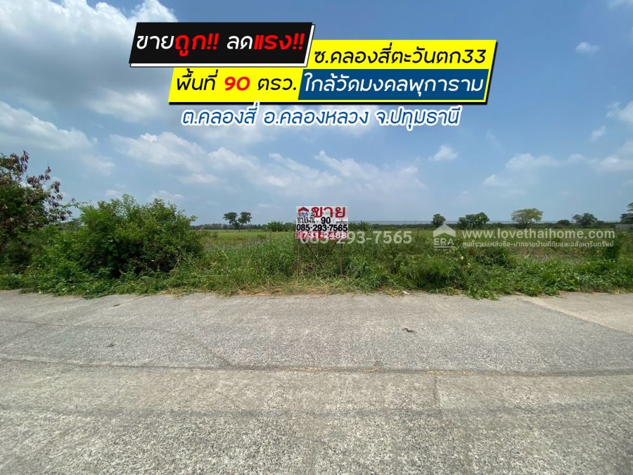 ขายถูก ที่ดินซอยคลองสี่ตะวันตก33 คลองสี่ คลองหลวง ปทุมธานี เป็นที่ดินจัดสรร แปลงสวย พื้นที่ 90 ตรว. ใกล้วัดมงคลพุการาม ปรับราคาลงสุดๆ เหลือเพียงแค่ 650,000 บาทเท่านั้น