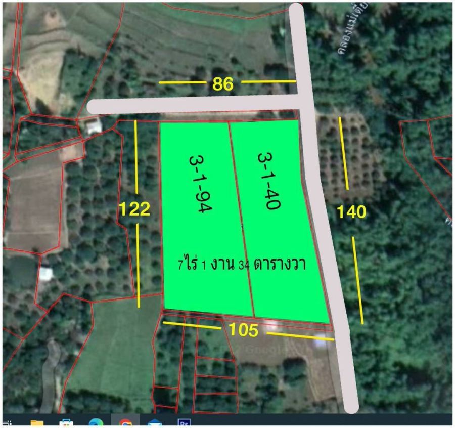 เนื้อที่โฉนด 7 ไร่ 1 งาน 34 ตารางวา ติดถนน 2 ด้าน