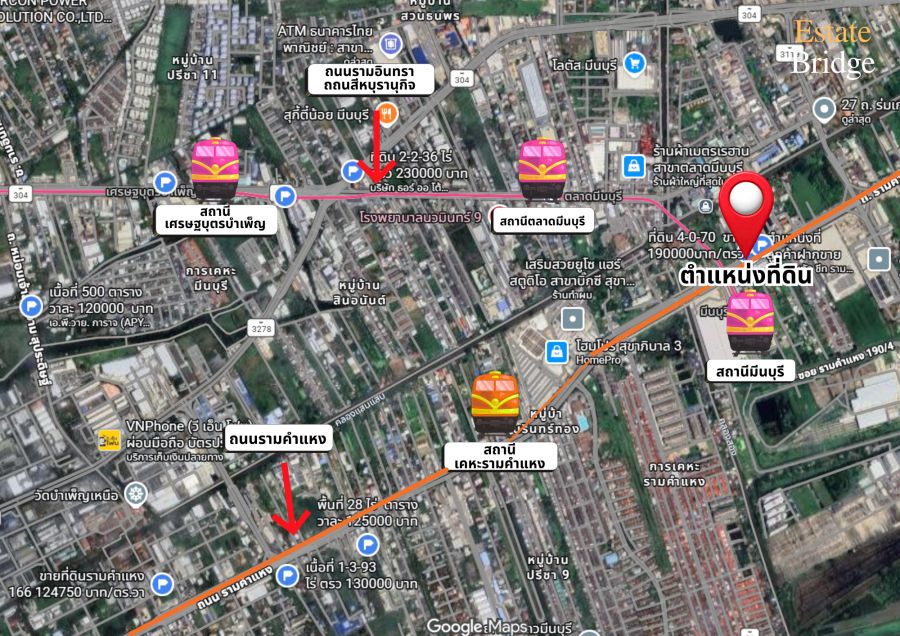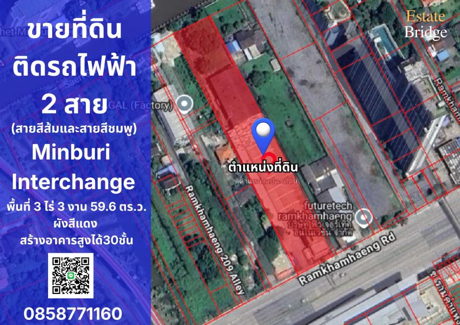 ขายที่ดิน ติด สถานีรถไฟฟ้าสายสีส้มและสายสีชมพู (Minburi Interchange ) ผังสีแดง เหมาะขึ้นคอนโด และอาคารสำนักงาน
