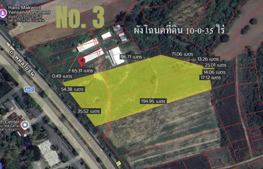 标题:帕尧府 (Phayao) 黄金地段土地出售 – 紧邻一号公路 (Phahonyothin Rd) – 适合物流仓储及商业开发