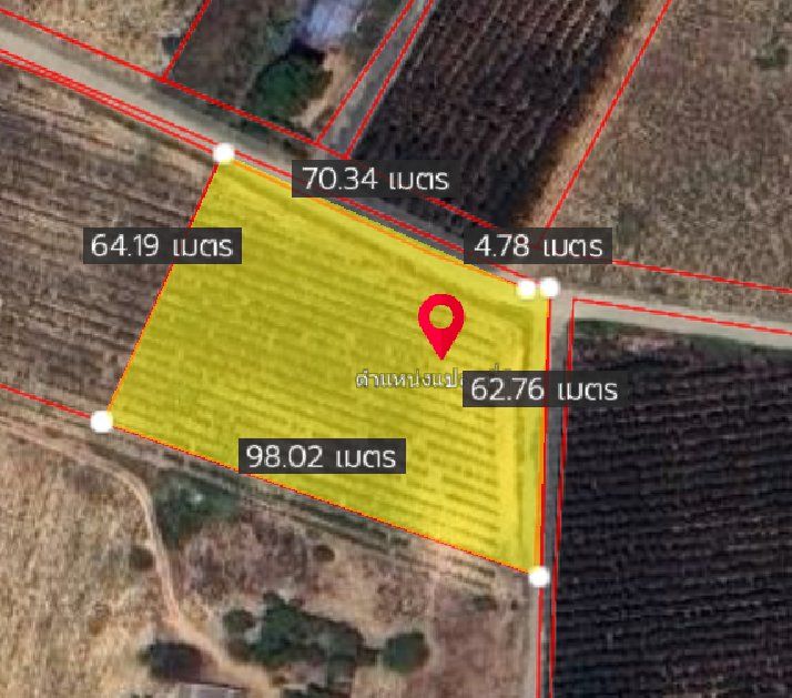 หน้ากว้างติดถนนคอนกรีต 74 เมตร X ยาว 64 เมตร