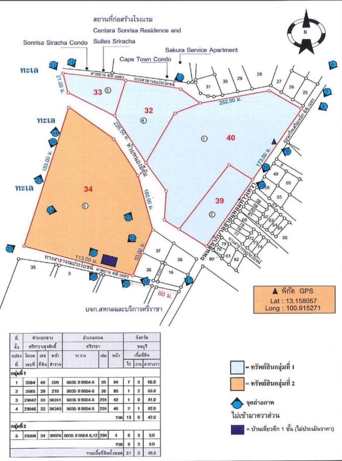 แบ่งขายที่ดินเปล่า 5 แปลง 21 ไร่ 3 งาน 45 ตร.ว. ใกล้เซ็นทรัล ศรีราชา ชลบุรี