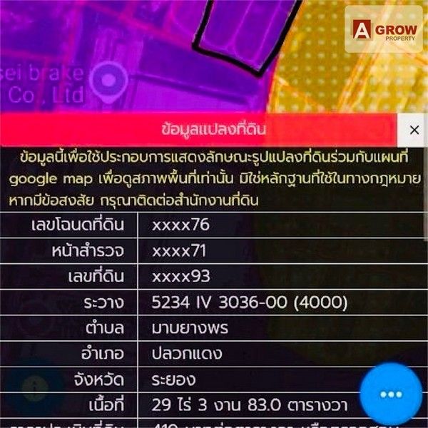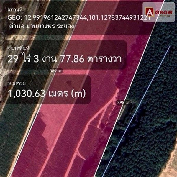 ขายที่ดิน ขนาดพื้นที่ 29-3-96 ไร่ ผังสีม่วง ปลวกแดง ระยอง