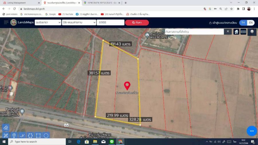 ขายที่ดินสวย สภาพแวดล้อมดีเยี่ยม ติดถนน 304 ตำบลท่าถ่าน อำเภอพนมสารคาม จังหวัดฉะเชิงเทรา