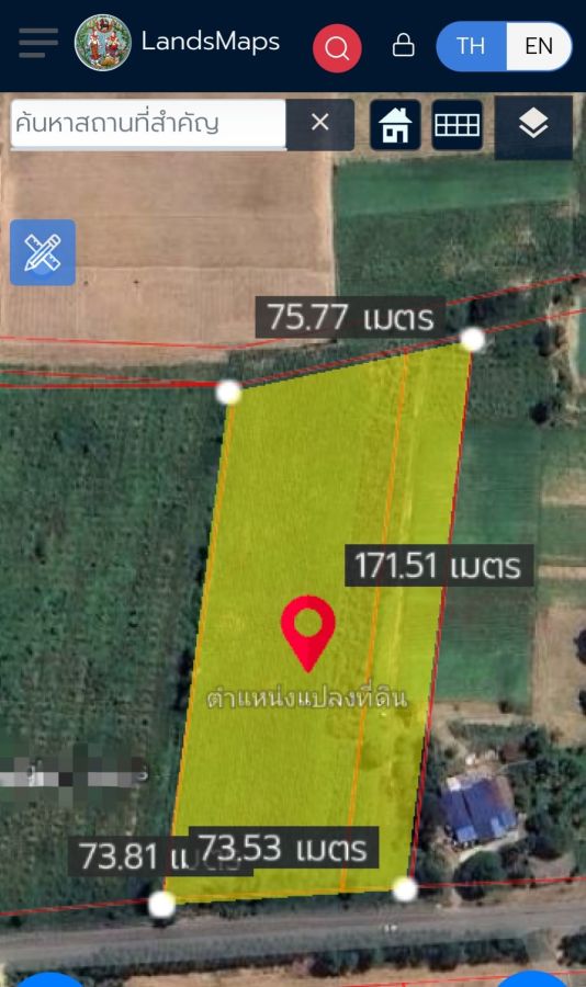 หน้ากว้าง 75 ม. X ยาว 170 เมตร