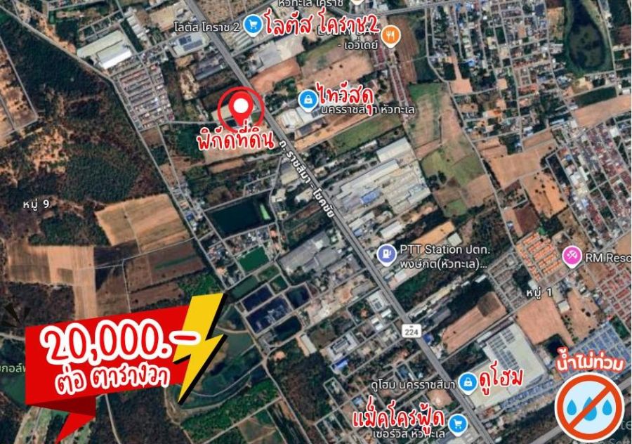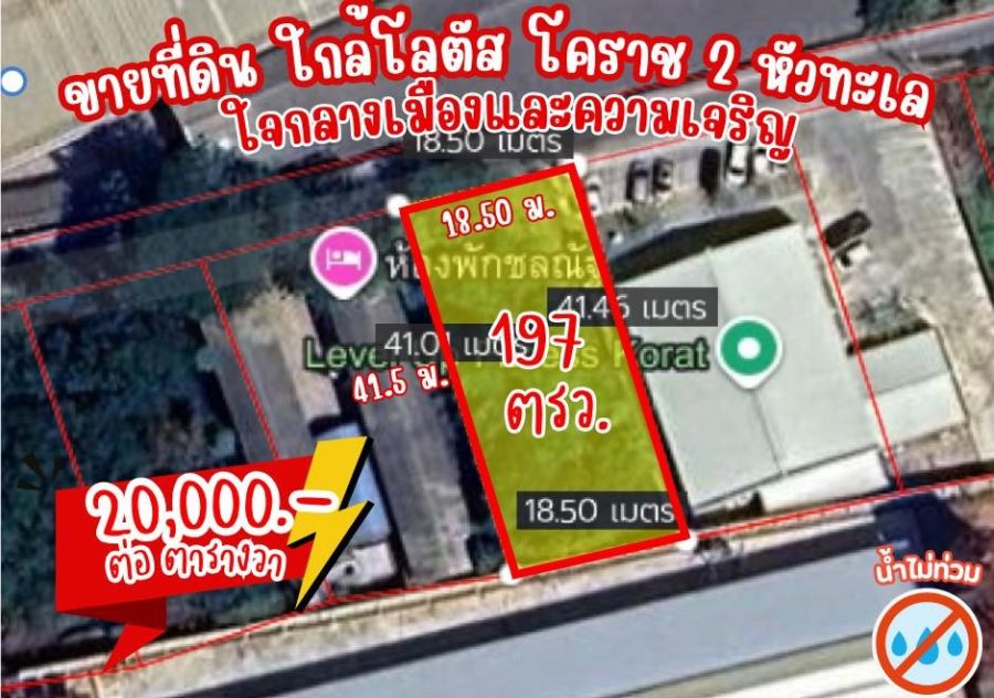 ขายที่ดินใจกลางเมืองโคราช 197 ตรว ทำเลทอง "หัวทะเล" ใกล้ Lotus 2