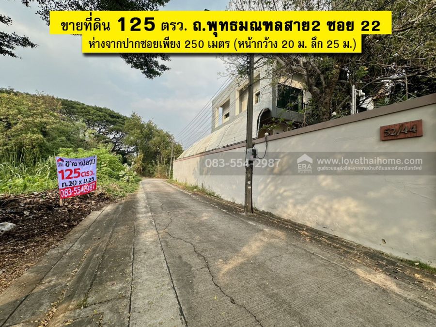 - ที่ดินเปล่าแปลงริม 125 ตรว. ถ.พุทธมณฑล สาย 2 ซอย 22