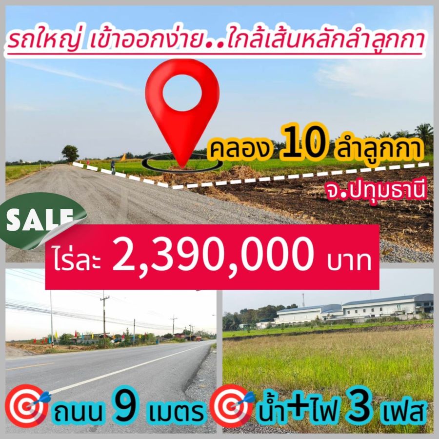 🔹 ถนนหลักคลอง 10 เพียง 200 เมตร (เข้าซอย)