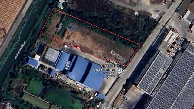 ที่ดินเปล่าพื้นที่สีม่วง สีม่วง ถมทึ่แล้ว หน้าติดถนน หลังติดคลอง เหมาะทำโรงงาน โกดัง