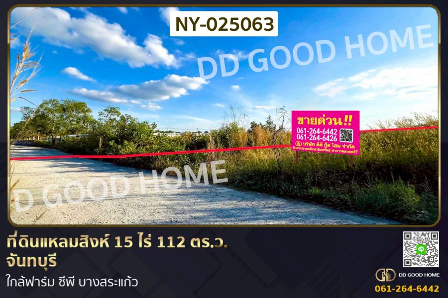 ที่ดินแหลมสิงห์ 15 ไร่ 112 ตร.ว. จันทบุรี ใกล้ฟาร์ม ซีพี บางสระแก้ว