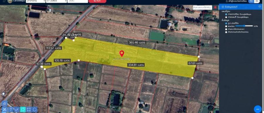 ที่ดินติดถนน 114ม. ลึก 365เมตร โดยประมาณ