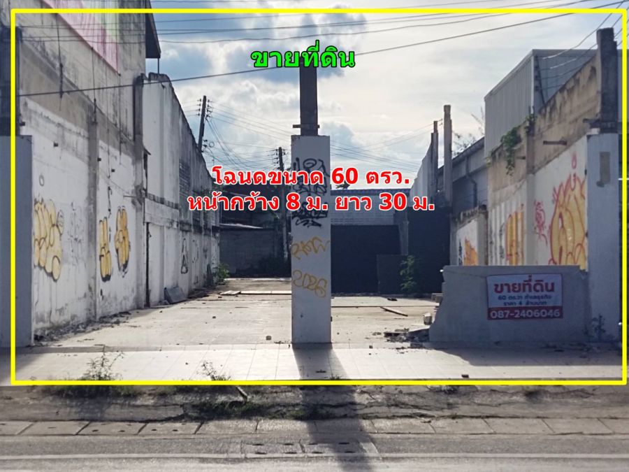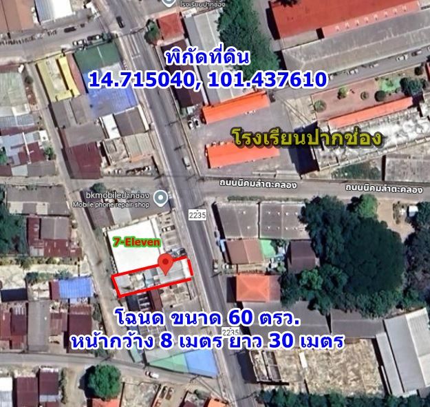 ที่ดิน เหมาะทำธุรกิจ ติดร้านสะดวกซื้อ 7-11 หน้าโรงเรียนปากช่อง ใกล้แหล่งชุมชน อ.ปากช่อง จ.นครราชสีมา ติดถนนหลัก 2235 หน้ากว้าง 8 ม. เขตเทศบาล น้ำไม่ท่วม มีไฟฟ้า น้ำประปา โฉนดขนาด 60 ตรว. 4 ล้าน โทร 087-240-6046 LineID : 0970278576