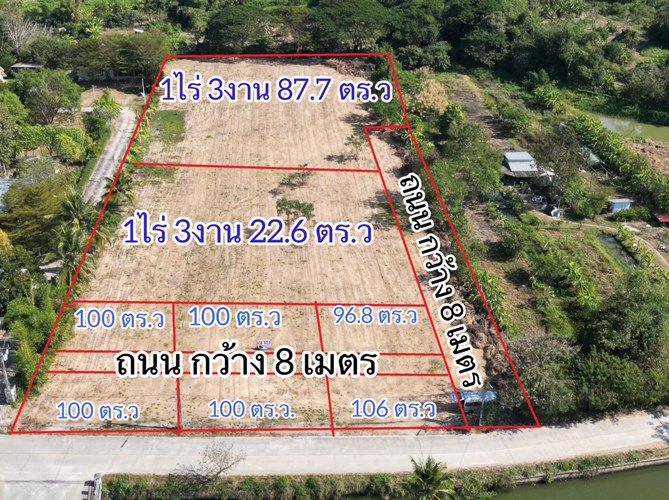 หน้ากว้าง 65 เมตร ลึก 160 เมตร โดยประมาณ รูปแปลงสี่เหลี่ยมผืนผ้า หน้าติดถนน หลังติด ลำเหมือง ที่สวยๆ เดินทางสะดวก ถนนหน้าแปลง กว้าง 8 เมตร บริเวณใกล้เคียงมีร้านอาหาร หมู่บ้าน บ้านสวน สามารถประกอบธุรกิจได้หลายรูปแบบ หรือจะสร้างสถานศึกษาก็ได้ค่ะ