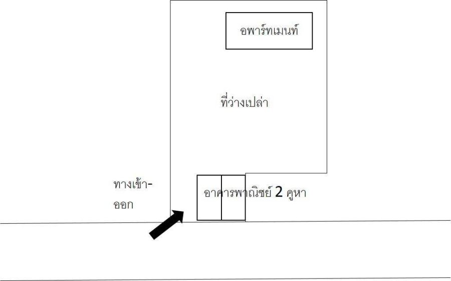 - ที่ดินเป็นรูปสี่เหลี่ยมผืนผ้า ทางเข้า 15 เมตร