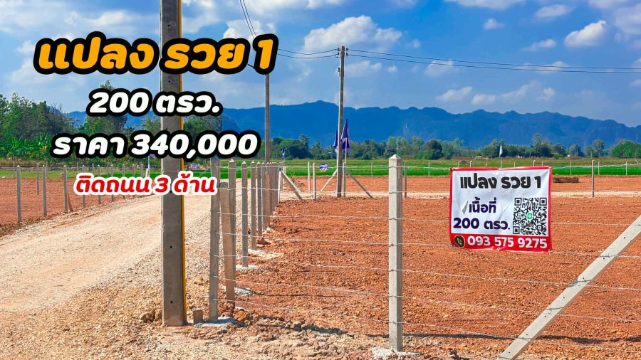 แปลง รวย 1 เนื้อที่ 200 ตรว. ราคา 340,000 บาท