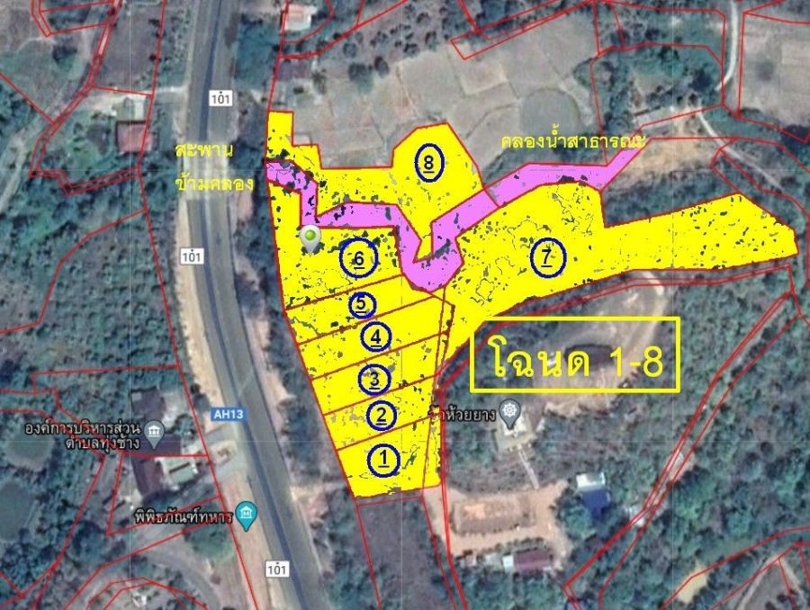 - ที่ดิน อยู่ฝั่ง ตรงข้าม อบต.ทุ่งช้าง