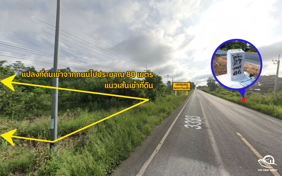 ─ ใกล้ถนนใหญ่ แปลงที่ดินห่างจากถนนใหญ่ประมาณ 80 เมตร