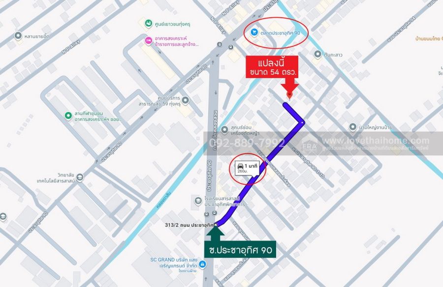 - ที่ดินเปล่า พื้นที่ 54 ตรว. ถนนประชาอุทิศ90 แยก1-7 ซอยชุมชนคลองเก้าห้อง