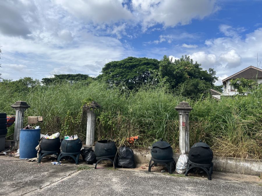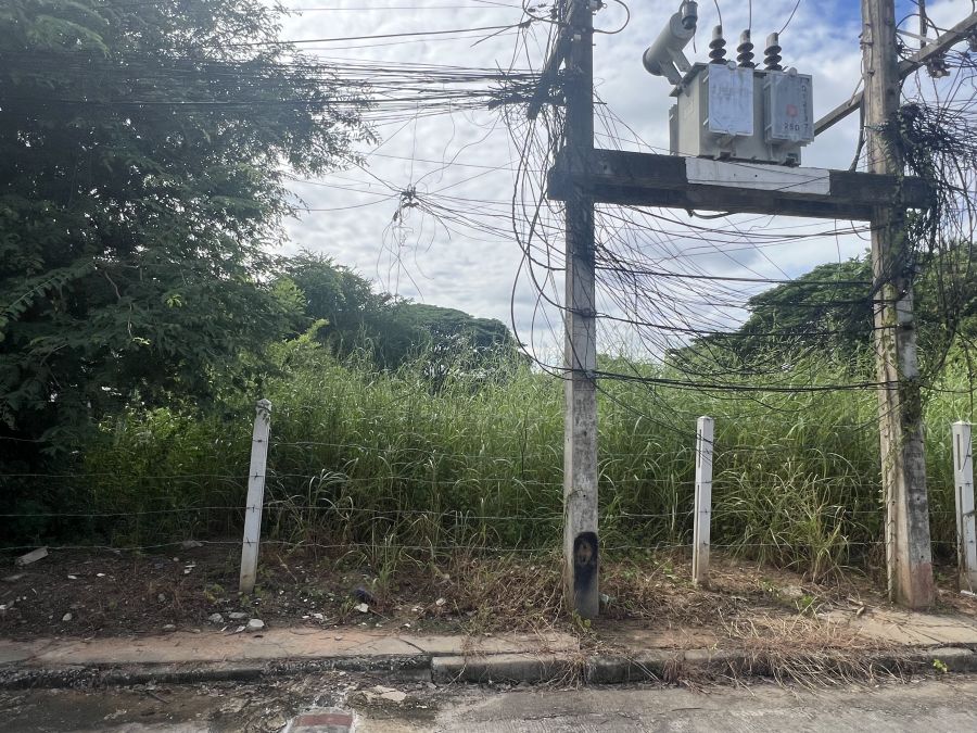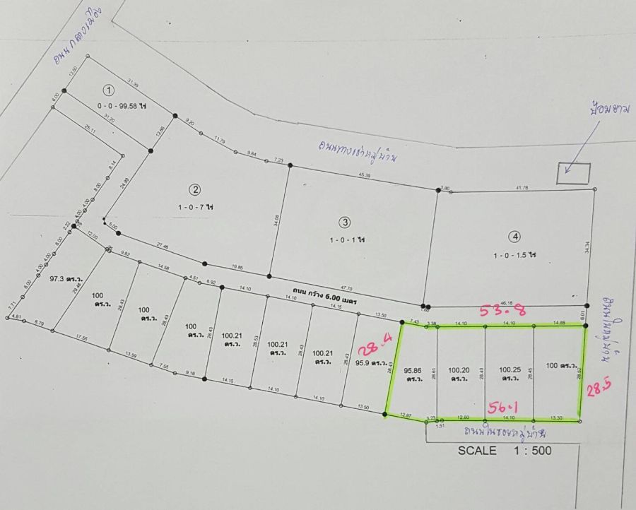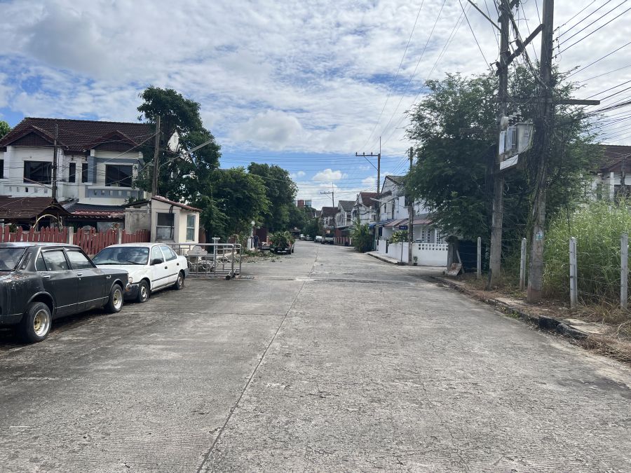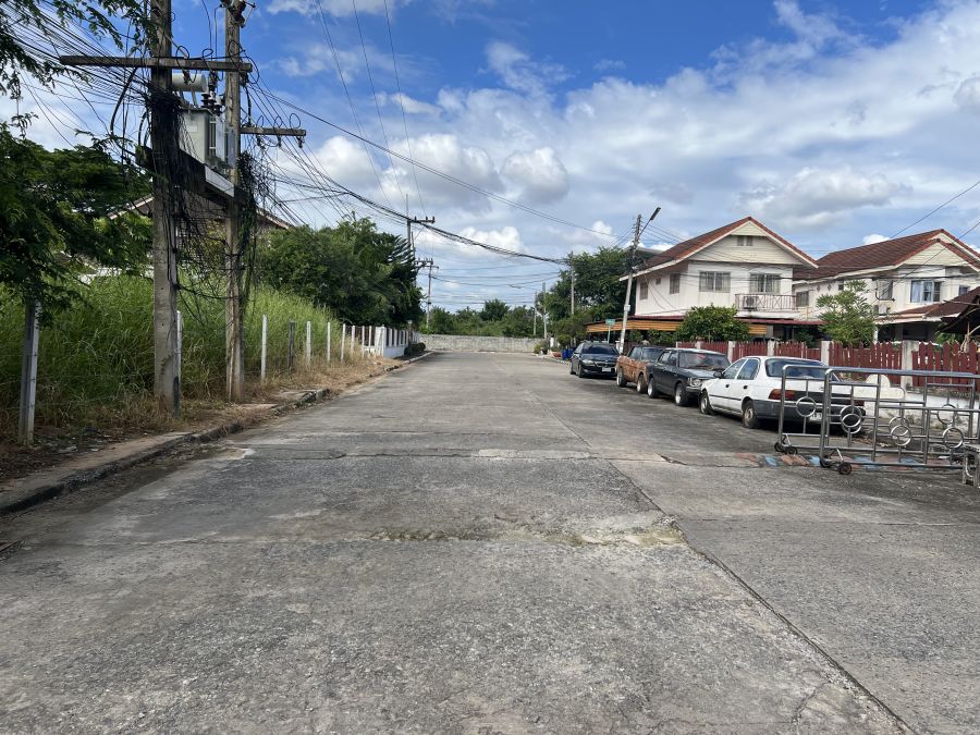 ที่ดินหน้ากว้าง 56 เมตร ลึก 28.5 เมตร แปลงมุม ติดถนนในหมู่บ้าน 2 ด้าน