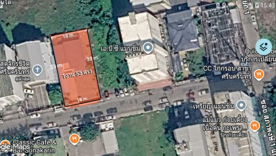 ขายที่ดิน 1งาน 53 ตรว. ถ.ศรีนครินทร์ ซอย 42 ใกล้สถานีรถไฟฟ้า สวนหลวง ร.9 แขวงหนองบอน เขตประเวศ กรุงเทพๆ