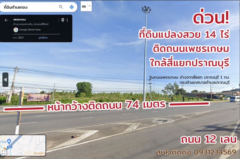 ขายที่ดินปราณบุรี 14 ไร่ 2 งาน 86 ตร.ว. ติดถนนเพชรเกษม หน้ากว้าง 74 เมตร