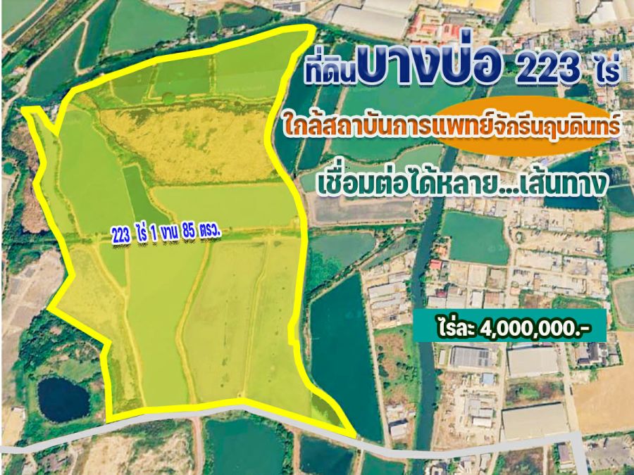 ขายที่ดิน บางบ่อ 223 ไร่ ใกล้สถาบันการแพทย์จักรีนฤบดินทร์