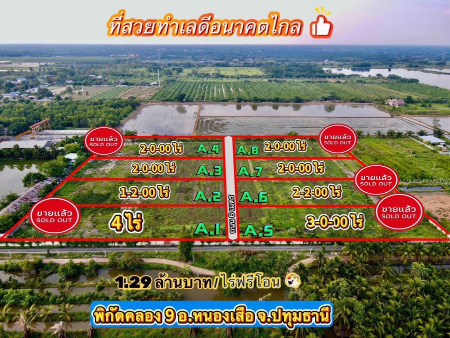 ขายที่ดินสวยทำเลดี ซ.พนารัตน์ คลอง 9 อ.หนองเสือ จ.ปทุมธานี