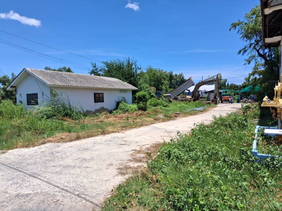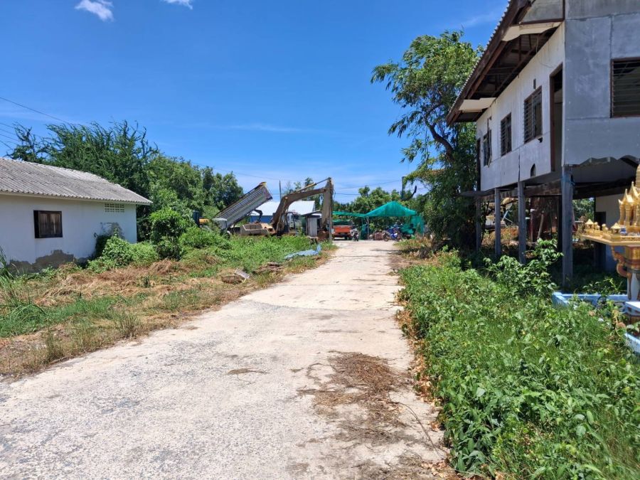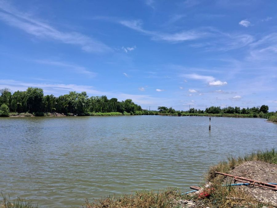 ถนนคอนกรีต ประกอบด้วยที่ดิน และบ่อกุ้ง สามารถทำเป็นบ่อตกกุ้ง หรือร้านอาหารได้