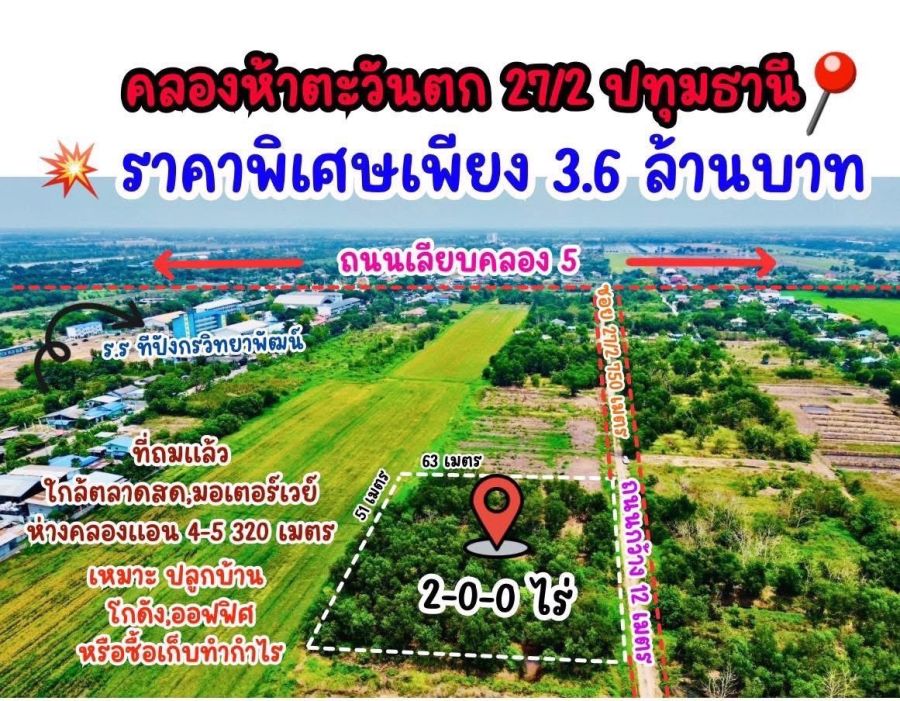 ขายที่ดินด่วนราคาถูกสุดๆ ตำบลคลอง 5 อำเภอคลองหลวง จังหวัดปทุมธานี