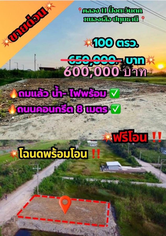 💥100 ตร.ว. 600,000.- บาท💥