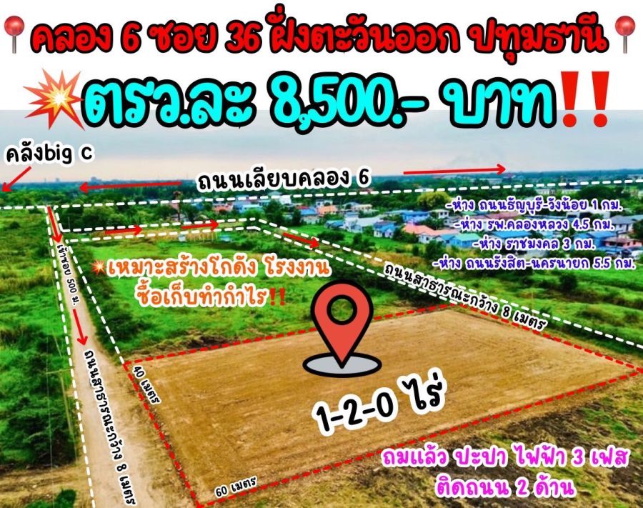ขายที่ดินทำเลทอง คลอง 6 (คลังbig c) อำเภอคลองหลวง จังหวัดปทุมธานี