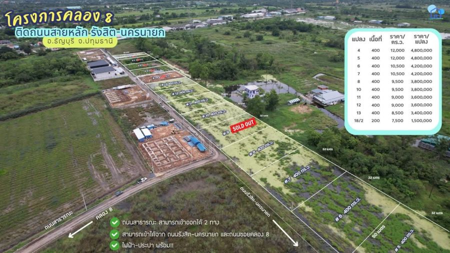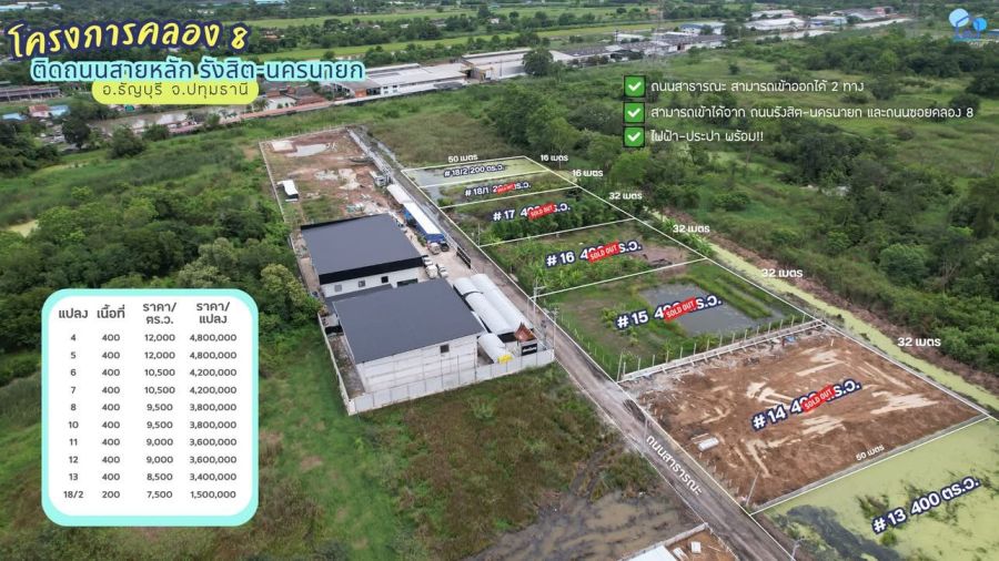 ขายที่ดินทำเลคุณภาพ บนถนนสายหลัก รังสิต–นครนายก
