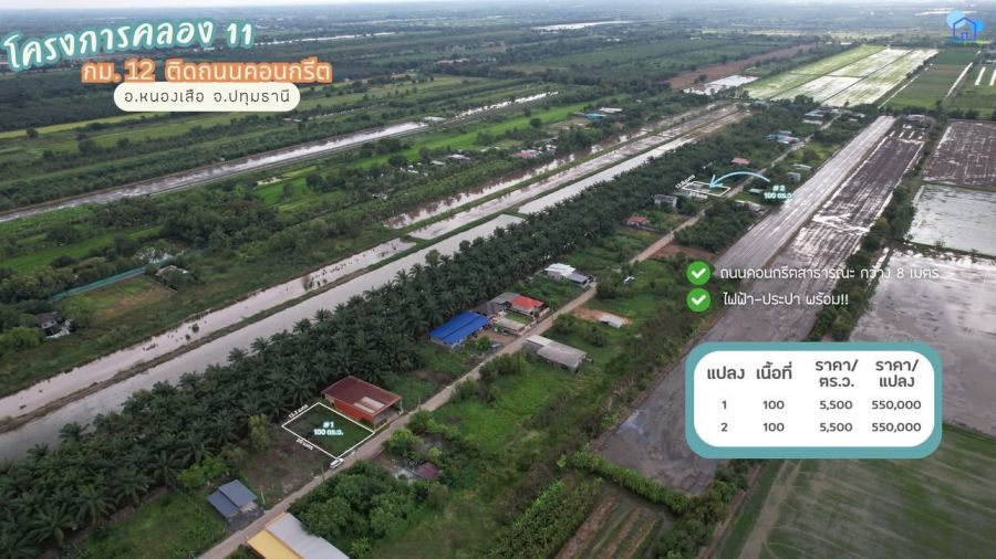 ขายที่ดินคลอง 11 ขนาดแปลงละ 100 ตารางวา อ.หนองเสือ จ.ปทุมธานี