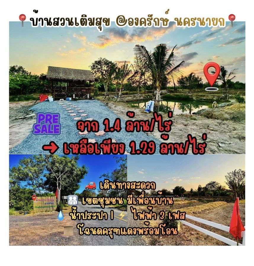 ขายที่ดินบ้านสวน องครักษ์ นครนายก 🌿