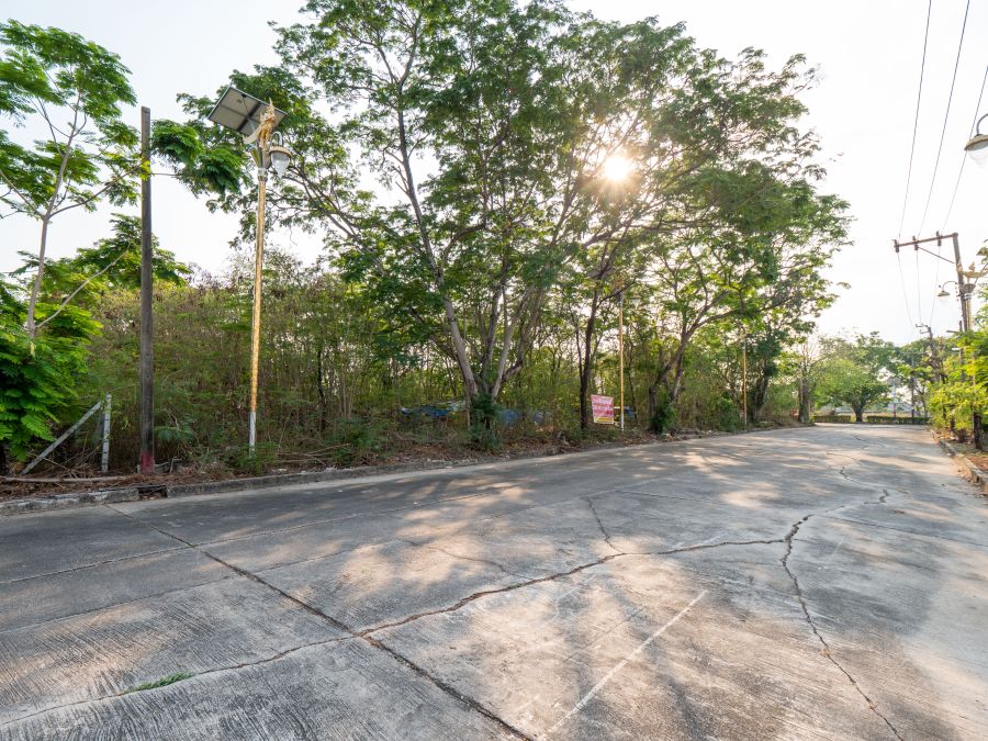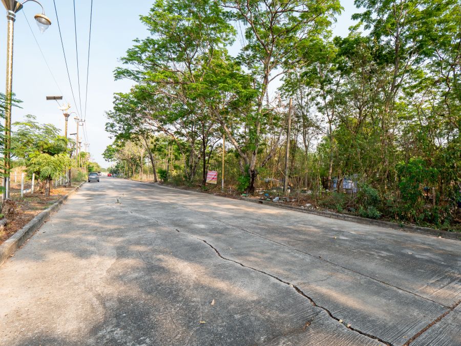 + ถนนคอนกรีตด้านหน้าและด้านหลังที่ดิน กว้างถึง 14 เมตร เป็นถนนสาธารณะประโยชน์