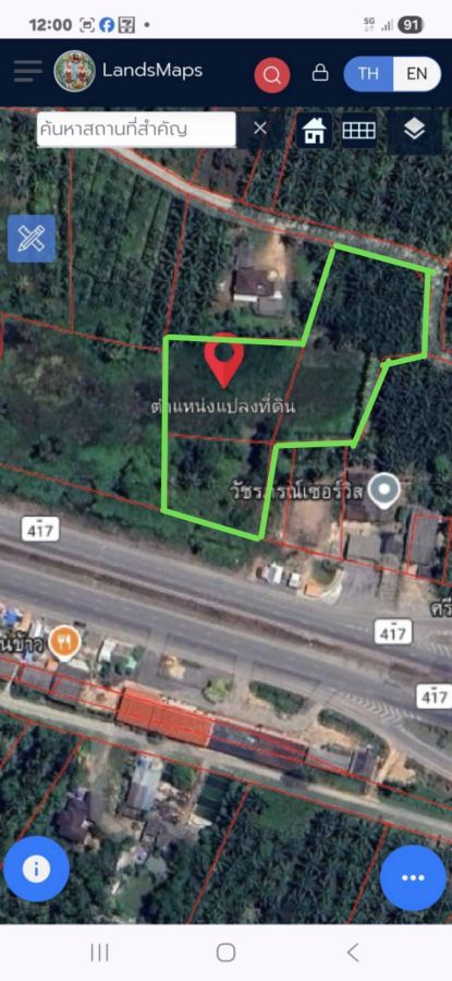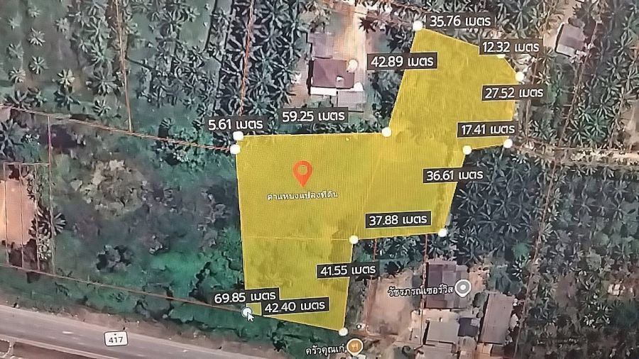 ขายที่ดินติดถนน 417ใกล้แยกศรีวิชัย เนื้อที่ 4 ไร่ 2 งาน ขายไร่ละ 7 ล้านบาทต่อรองได้