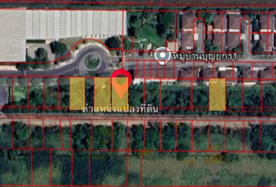 - ขนาด: แบ่งขาย 4 แปลง (แปลงละ 100 ตร.ว.) กว้าง 14 เมตร ลึก 28 เมตร (โดยประมาณ)