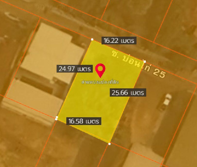 หน้ากว้างติดถนนซอยบ่อนไก่ 16 เมตร X ยาว 25 เมตร