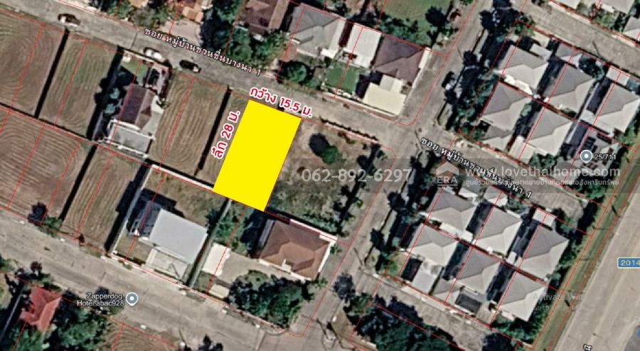 - ที่ดินหันหน้าทิศตะวันออกเฉียงเหนือ ที่ดินกว้าง 15.5 เมตร x ลึก 28 เมตร