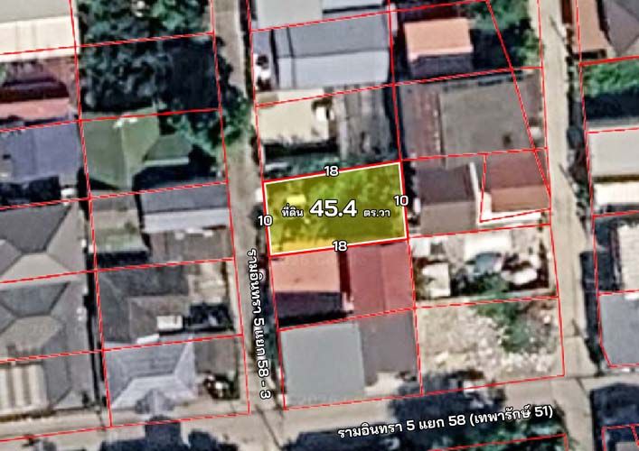 - ที่ดินถมแล้ว 45.4 ตร.วา รูปแปลงสี่เหลี่ยมผืนผ้า 10 x 18 เมตร