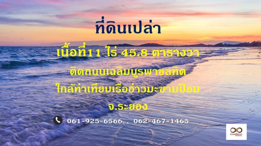 ขายที่ดินแปลงสวย ใกล้ทะเล จ.ระยอง อ.แกลง เนื้อที่ 11 ไร่ 45.8 ตร.วา