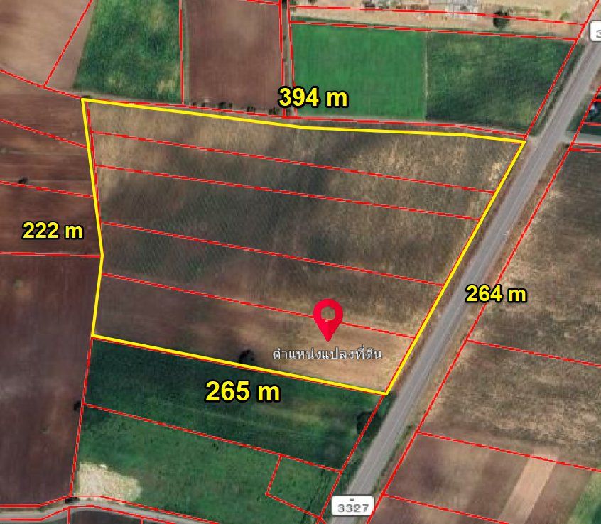 หน้ากว้างติดถนนเส้น3327 264 เมตร X ยาว 394 เมตร