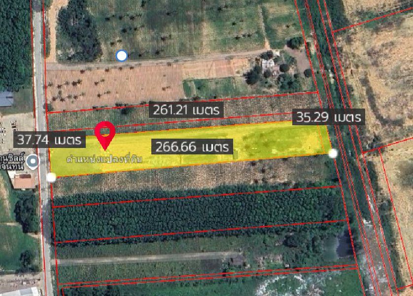 หน้ากว้างติดถนนคอนกรีต 37 เมตร X ยาว 266 เมตร